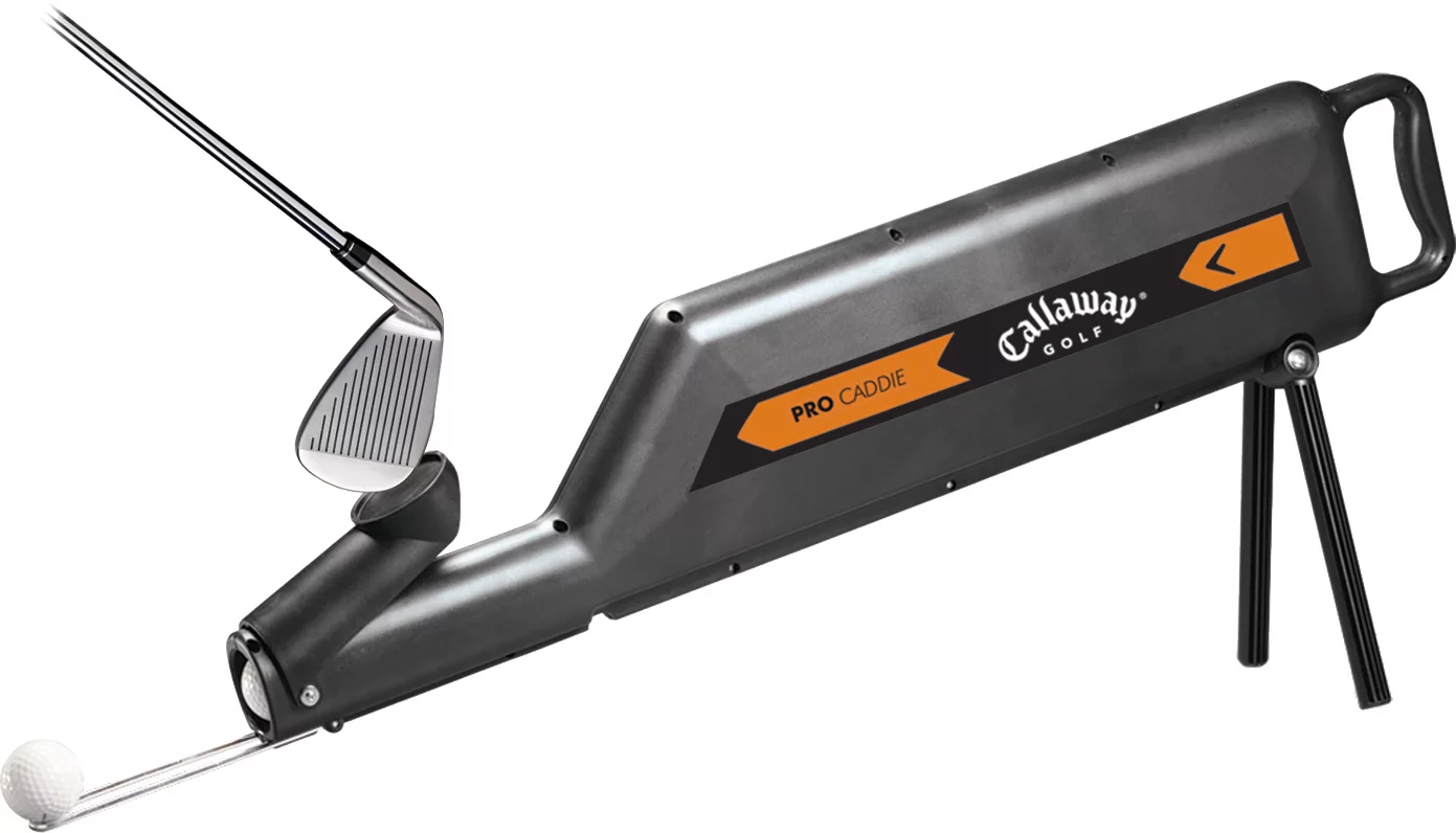 Control the speed and focus of your next training session with the Callaway® Pro Caddie Premium Golf Ball Shagger. This golf ball dispenser uses a convenient, club-activated system to feed one ball at a time, encouraging you to place attention on one shot at a time. The shagger holds up to 35 balls at one time and features a unique, patented design which includes a collapsible stand mechanism and sturdy grip handle for easy transportation.